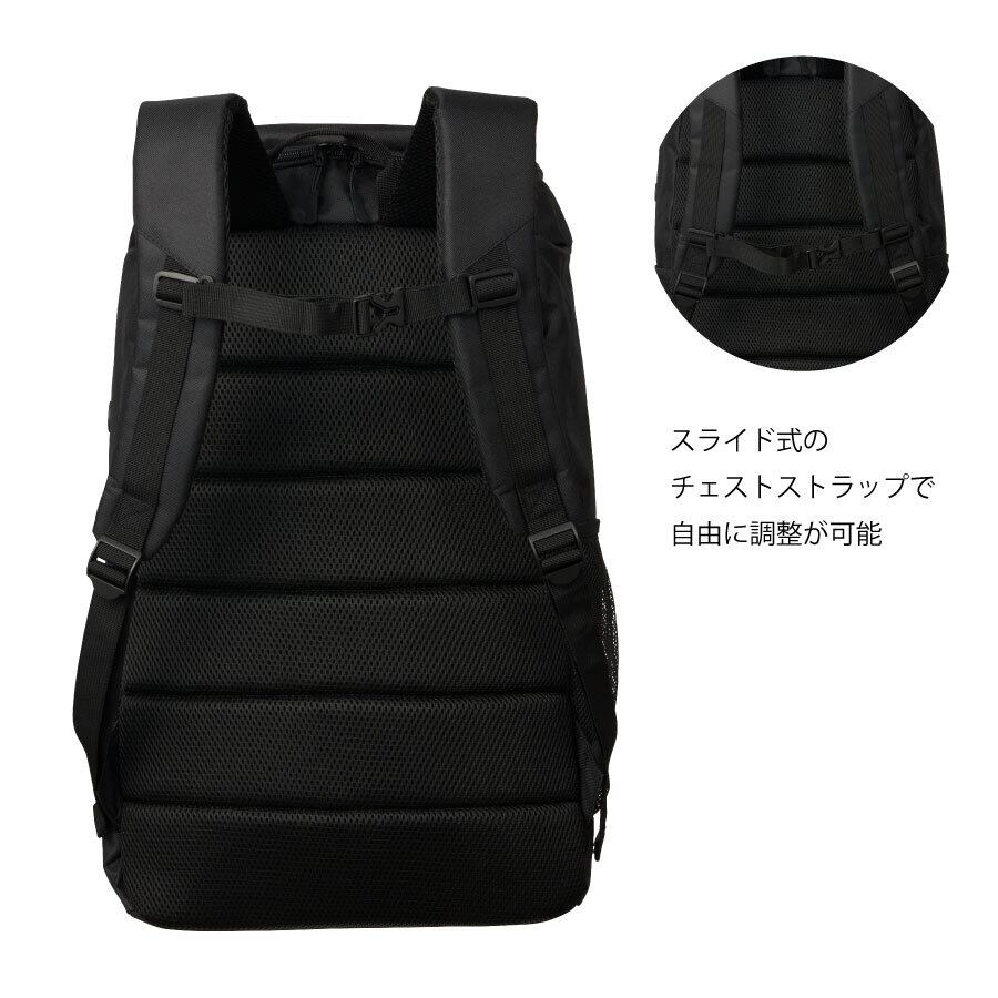 背面とショルダーには通気性の良いメッシュ生地を採用し、厚めのスポンジで負担軽減!